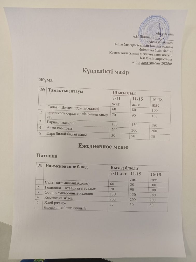 25 04 2025 күнгі ас мәзірі