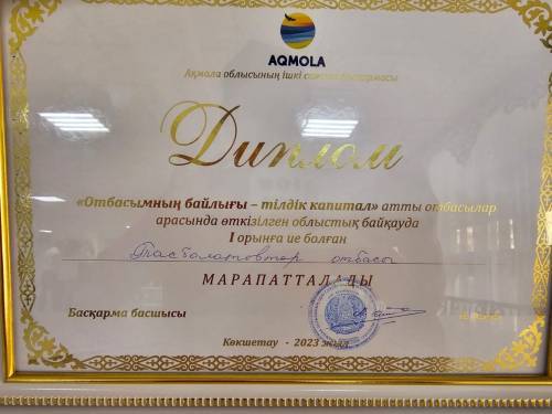 "Отбасымның байлығы - тілдік капитал" отбасылар арасында өткізілген облыстық байқауда I орынға ие болған ағылшын тілі мұғалімі Тасболатова Гульназ марапатталды құттықтаймыз!!!